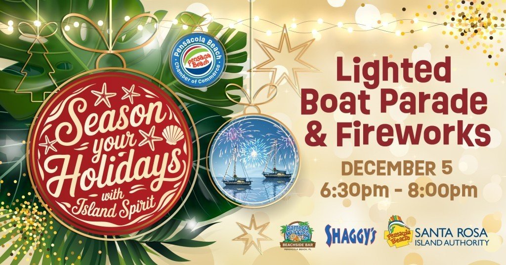 The season kicks off in the Florida Panhandle, setting a high bar for the rest of the coast. On Friday, December 5, the Pensacola Beach Lighted Boat Parade takes over Little Sabine Bay at 6:30 PM. It’s a classic run, looping the bay before heading to the Santa Rosa Sound—grab a spot at the Boardwalk for the best vantage point.
