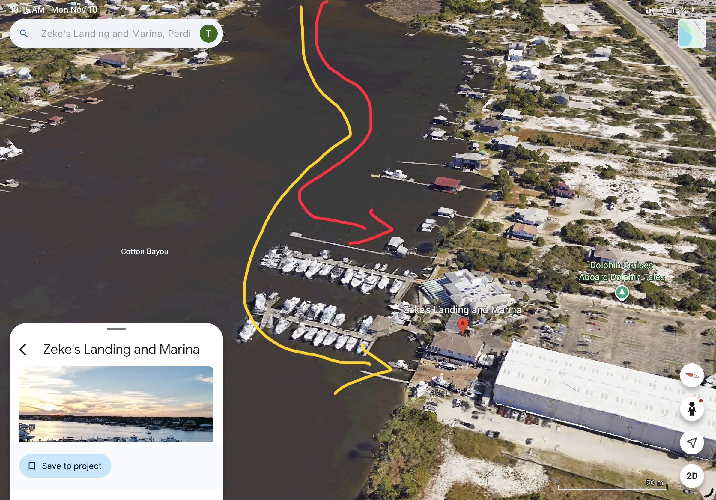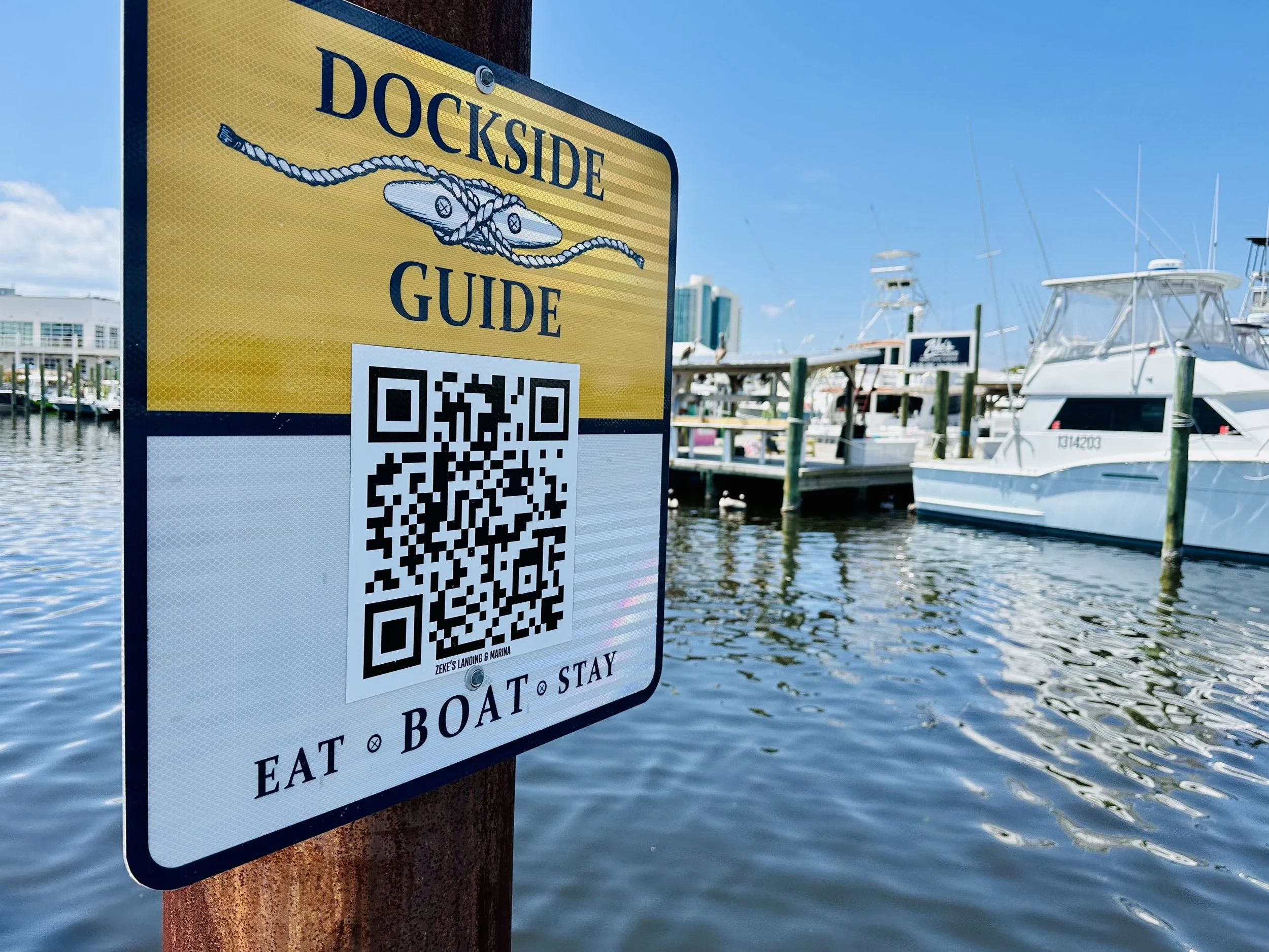 There's a moment that happens every time I pull into Cotton Bayou and the docks at Zeke's Landing come into view — a moment I've never been able to fully explain to someone who hasn't been there by boat. The charter fleet is staged in the center section, forty-plus hulls pointed toward Perdido Pass and ready for tomorrow's run. The restaurant is open. The Mo Fishin’ Bar has music drifting across the water. Somewhere behind the dry stack facility a forklift is lowering a center console back into the water. Jarett or Brad are sea trialing a boat with a prospective customer. A family just off a dolphin cruise is walking up the boardwalk with their faces still lit up. And I'm sitting at the helm thinking: this is exactly why Dockside Guide exists. Because you cannot know this place from the road. You have to come in from the water to understand what's actually here.